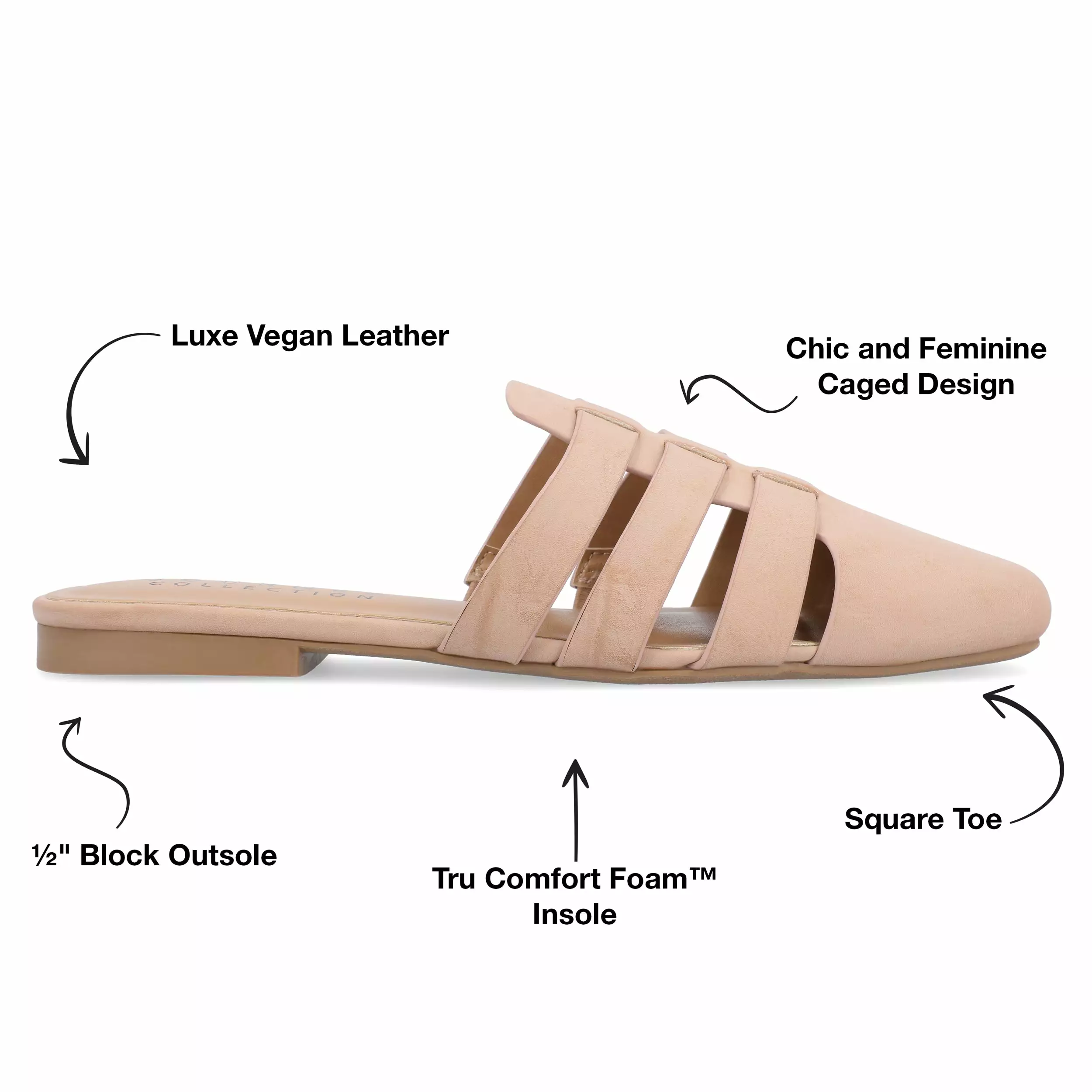 | Color | Nude, Black, Bone, Brown, Clay |