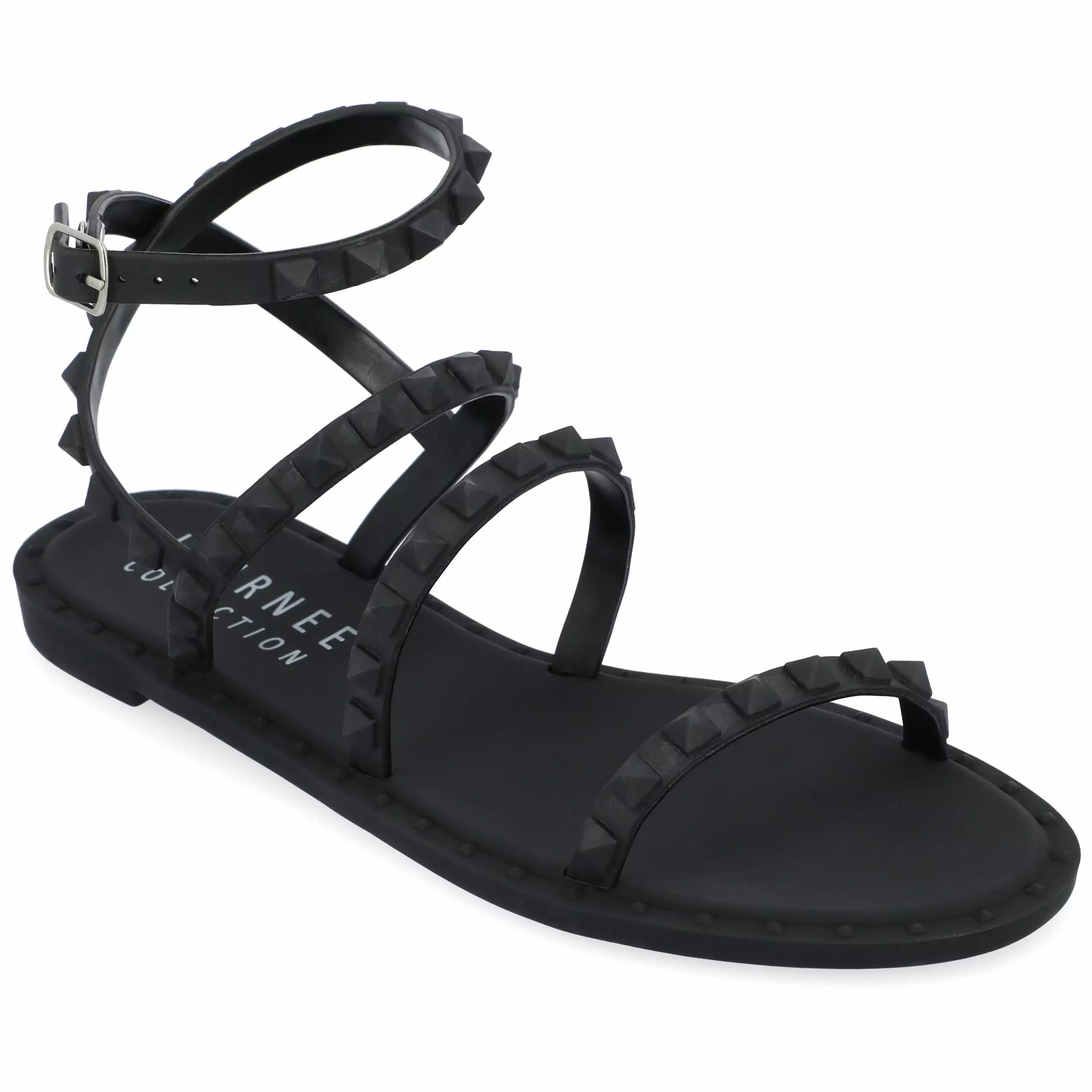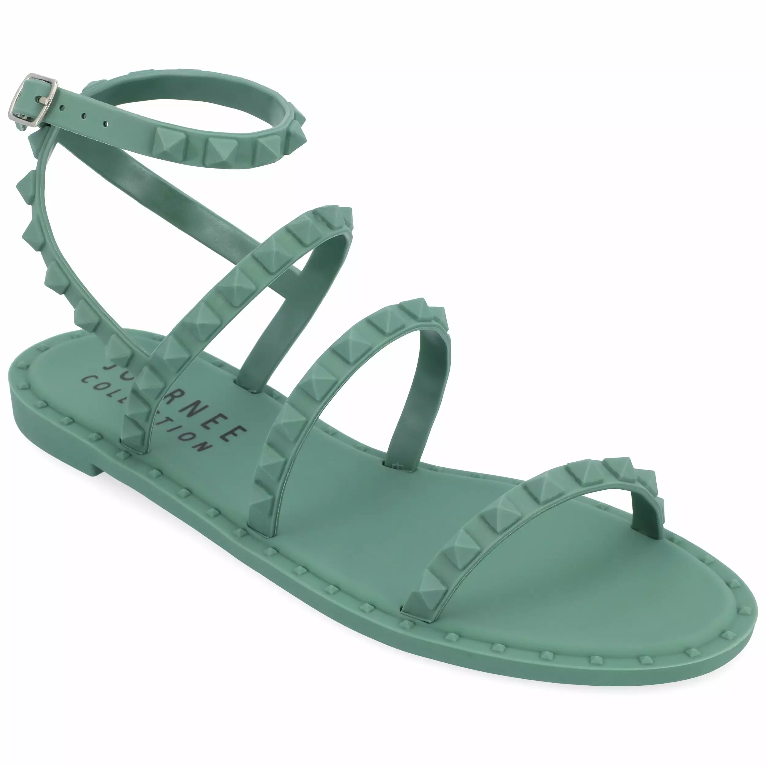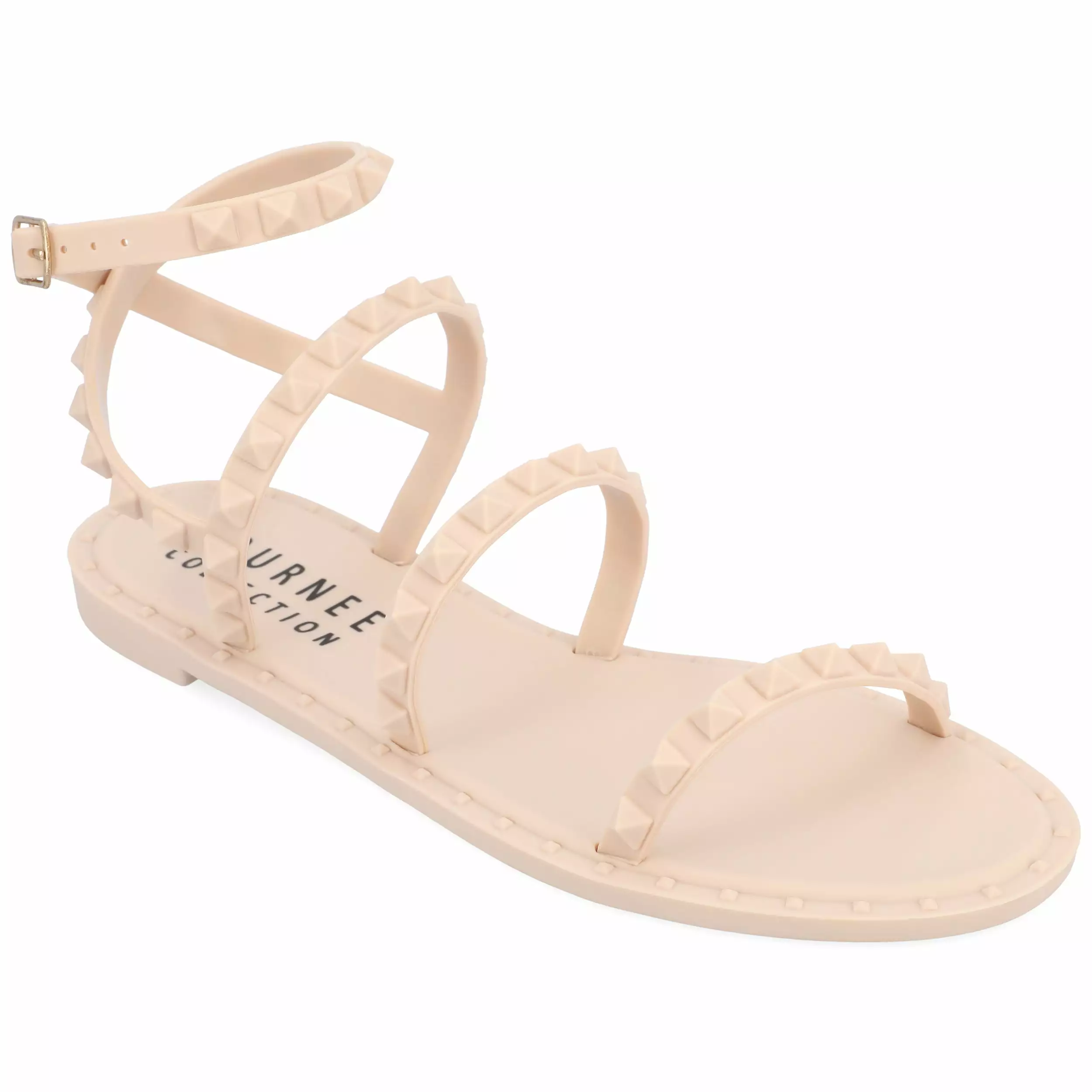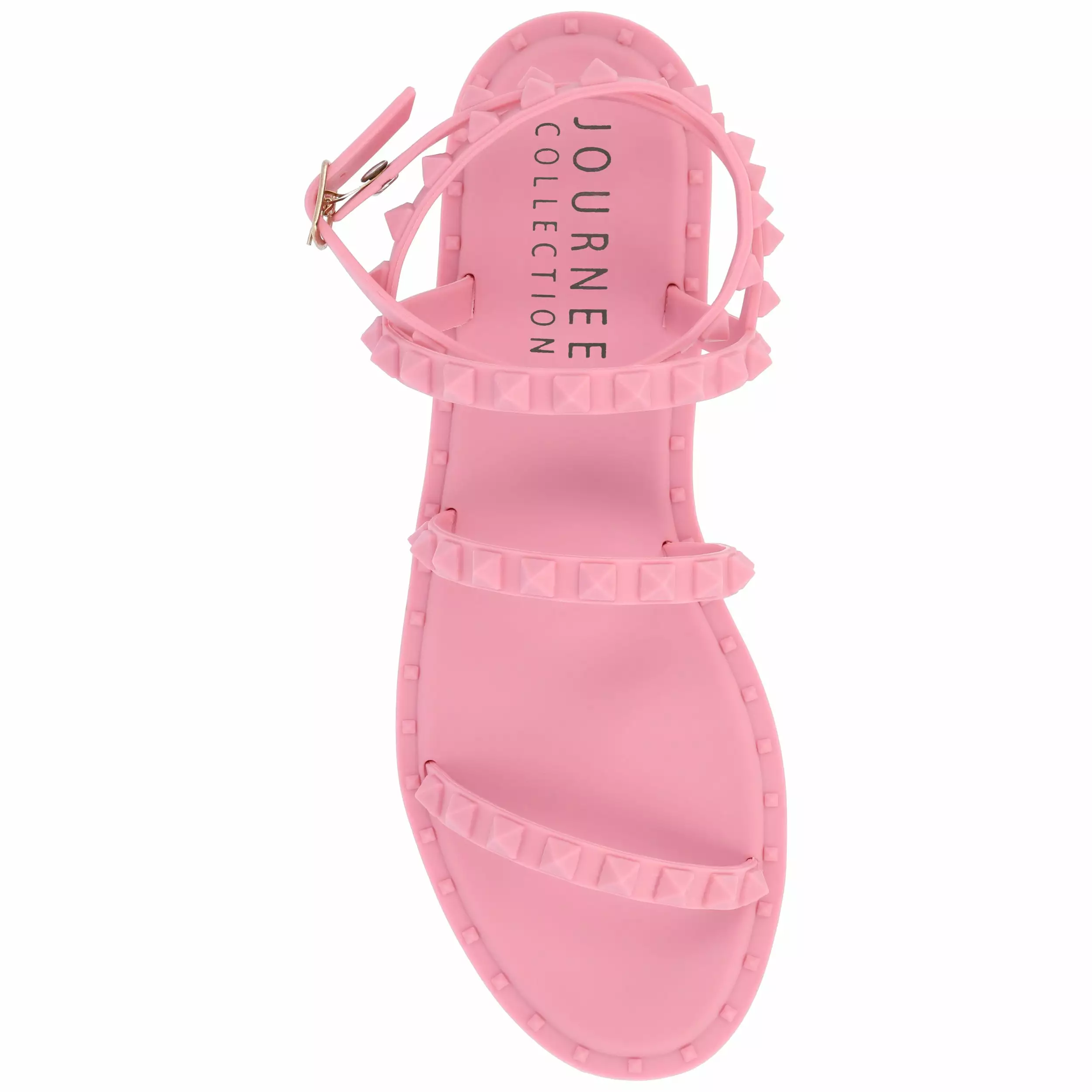 This boldly colored multi-strap sandal is made with flexible jelly for a retro look.
