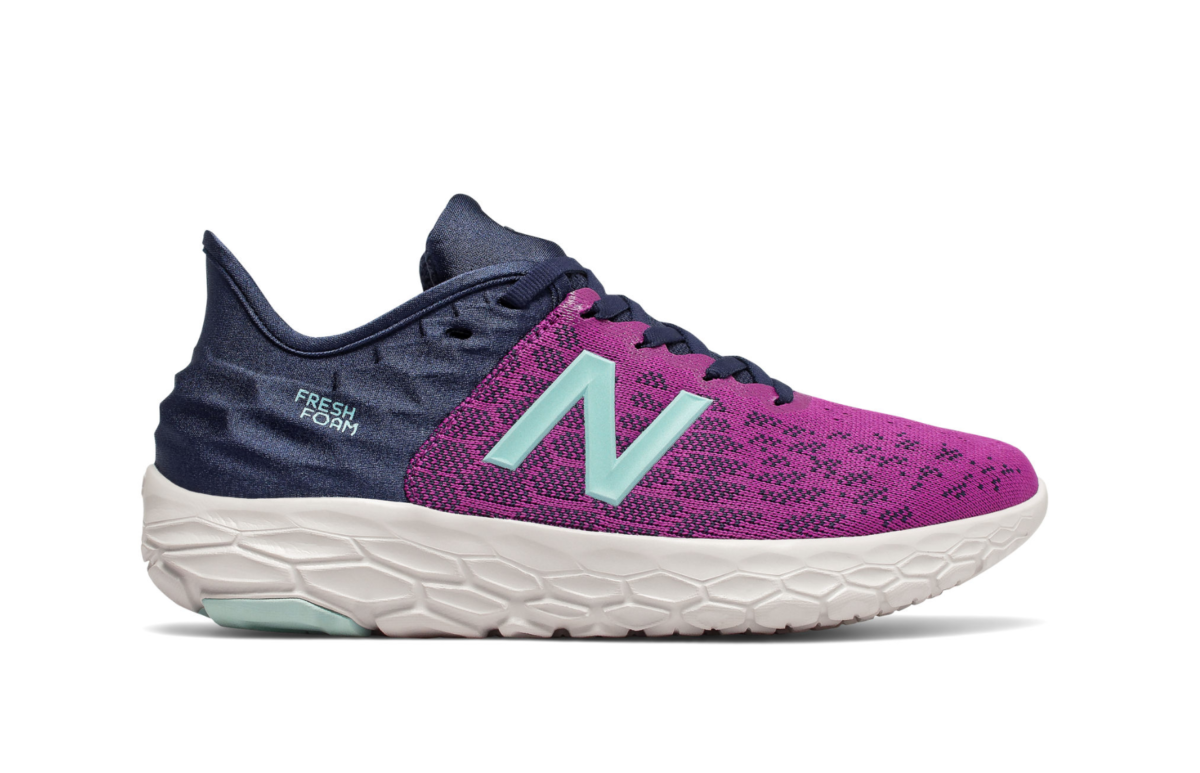 The Fresh Foam Beacon v2 women’s running shoe delivers an incredibly cushioned underfoot feel in a shockingly lightweight package. The updated engineered knit upper is soft and breathable in the forefoot, with a new Ultra Heel construction for a sleek rearfoot fit. Underfoot, strategically placed rubber pods offer targeted durability in high-abrasion areas. The Fresh Foam Beacon v2 women’s running shoe is inspired by the runner who wants lightweight, high-performing cushioning.